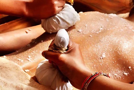 An Ayurvedic sudation therapy using warm herbal leaf boluses dipped in medicated oils. Patra Pinda Swedan relieves joint pain, reduces inflammation, improves circulation, strengthens muscles, and promotes flexibility with deep rejuvenating effects.