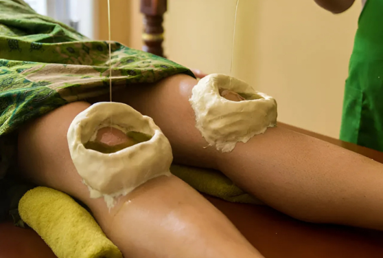 An effective Ayurvedic therapy for knee pain and joint stiffness, Janu Basti involves pouring warm medicated oil on the knee joint, reducing inflammation, easing pain, improving mobility, strengthening joints, and enhancing knee health.