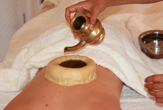 A specialised Ayurvedic therapy for lower back pain, Kati Basti involves pouring warm medicated oil on the affected area, relieving stiffness, reducing inflammation, improving circulation, and promoting spinal health, flexibility, and overall deep relaxation.