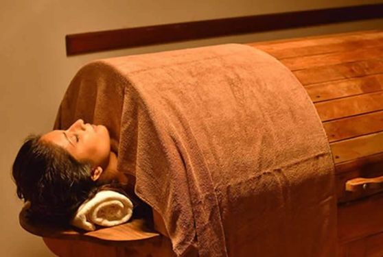 An Ayurvedic steam therapy that uses herbal-infused steam to open pores, detoxify the body, improve circulation, relieve muscle tension, enhance respiratory health, promote deep relaxation, rejuvenate the skin, boost immunity, and restore overall body vitality.